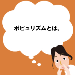“ある政治問題に対して一定以上の見識があり、冷静で合理的な判断を下すことのできる国民よりも、一時的な感情や空気によって政治的態度を決めてしまう大衆の意思を重視し、そんな人々の支持を集めるやり方で政治的基盤を作り上げる手法をポピュリズムということが多いです。”